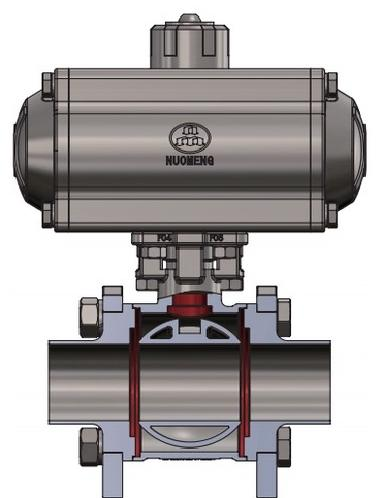 五片式球閥,包括閥體以及驅(qū)動(dòng)閥體轉(zhuǎn)動(dòng)的氣動(dòng)執(zhí)行器,閥體內(nèi)部包括有球體和閥桿,閥體兩側(cè)設(shè)有連接架,