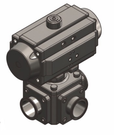 L型流道的三通球閥,采用4面閥座,受力平衡,保證閉止通道上可靠密封,球芯采用L型流道通孔。