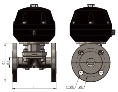 需要開(kāi)啟任務(wù)時(shí),通過(guò)手動(dòng)旋轉(zhuǎn)手輪或驅(qū)動(dòng)氣動(dòng)控制執(zhí)行裝置來(lái)帶動(dòng)閥桿向上運(yùn)動(dòng),球形膜片隨之向上彎曲,從
